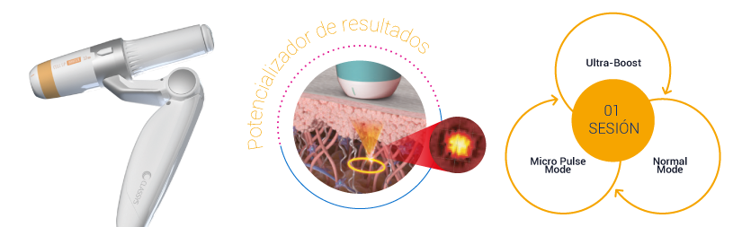 Pieza de mano que proporciona energía MMFU con un movimiento circular en los modos Micro Pulsado y Normal. La nueva pieza de mano Ultra-Booster del Ultraformer MPT proporciona una mayor área de entrega de energía y una mayor calidad en los resultados.